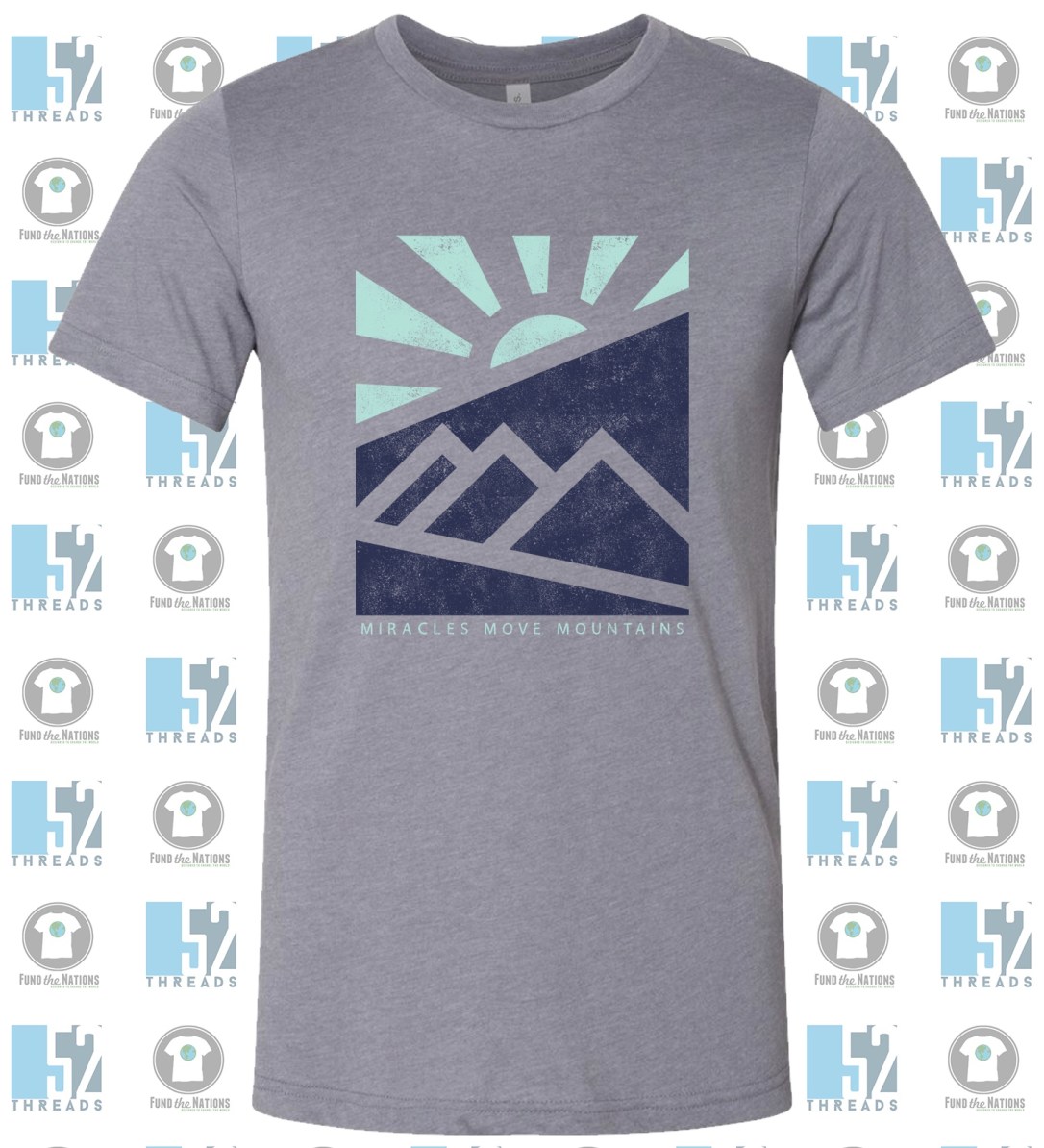 A few weeks ago, we made a goal to raise $5000 in 5 days, in order to meet a $5000 matching grant. Meeting that goal was shocking and amazing. This is a family who has truly stepped forward, without having the funds in hand, fully trusting that God will make a way. And time and time again, He is making a way. (That doesn’t mean we aren’t working our behinds off- but the dollars are continuing to add up). Our motto during this process has been “Miracles Move Mountains.” After this massive miracle, I knew I wanted a shirt to celebrate it. I asked my friends at Fund The Nations to design it, with these criteria 1) not orange and 2) Miracles Move Mountains. I could not be more ecstatic how they turned out.